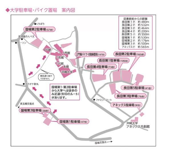 ※沖縄大学の各駐車場の利用については、駐車許可証の提示が必要です。