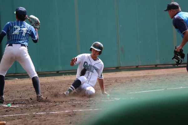 試合を決定づけたのは6回でした。3番野里が四球で出塁すると、5番指名打者金城憲汰もつづき、6番田場のライト前ヒットで満塁に、続く7番井上のライト前ヒットで1点、中尾、仲本のセンター前ヒットでこの回一挙6点を追加、8対0で勝ちました。
