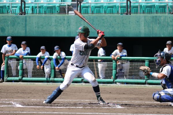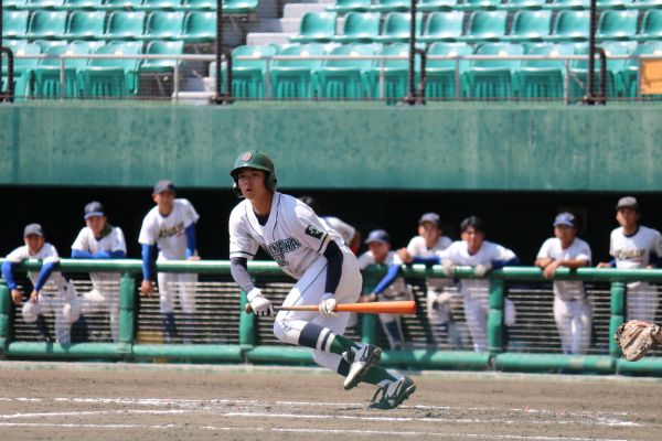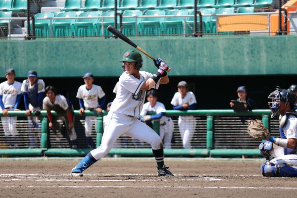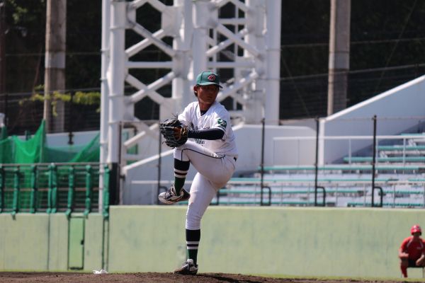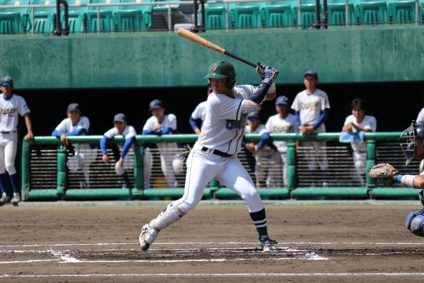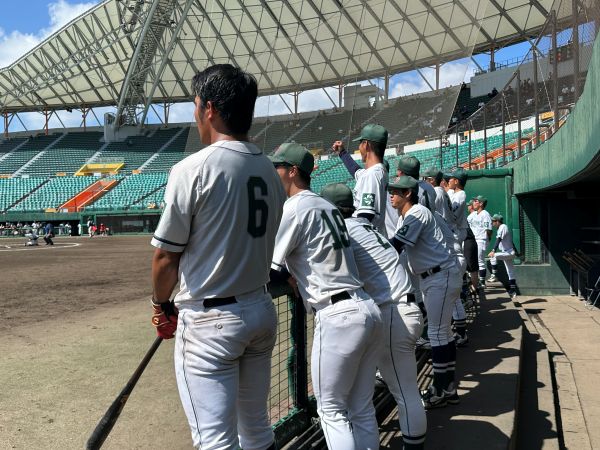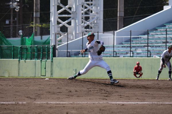 試合は2回1アウトから5番金城、6番田場、7番城間とヒットが飛び出し満塁に、8番中尾がフォアボールで先制すると、9番仲本のスクイズが成功して追加点をその後1番中村のレフト前ヒットでこの回一挙4点を挙げます。その裏相手に1点をいれられますが、本学野球部は4回にも3点を追加し、6点のリードで前半を終えます。