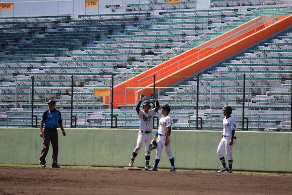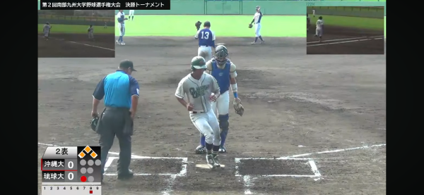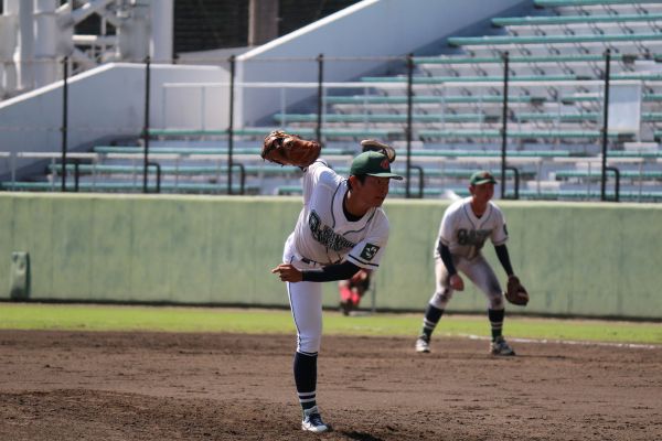 6回裏に2点を追加されますが、ピッチャー上原章人が幾度とピンチを切り抜け、8回には昨日の試合で好投した津波辰弥が登板し継投が成功、地区大会で1位の琉球大学に7対3で勝ちました。
