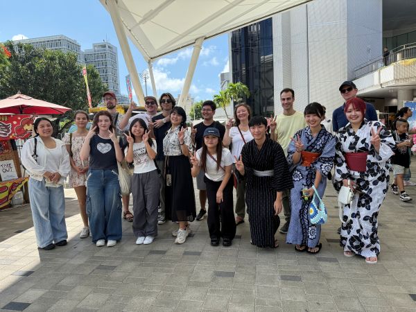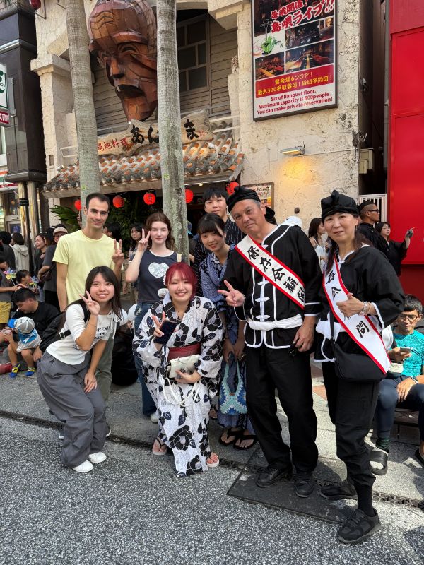 学生たちは、那覇市で行われる沖縄の伝統行事に留学生と一緒に参加することで
