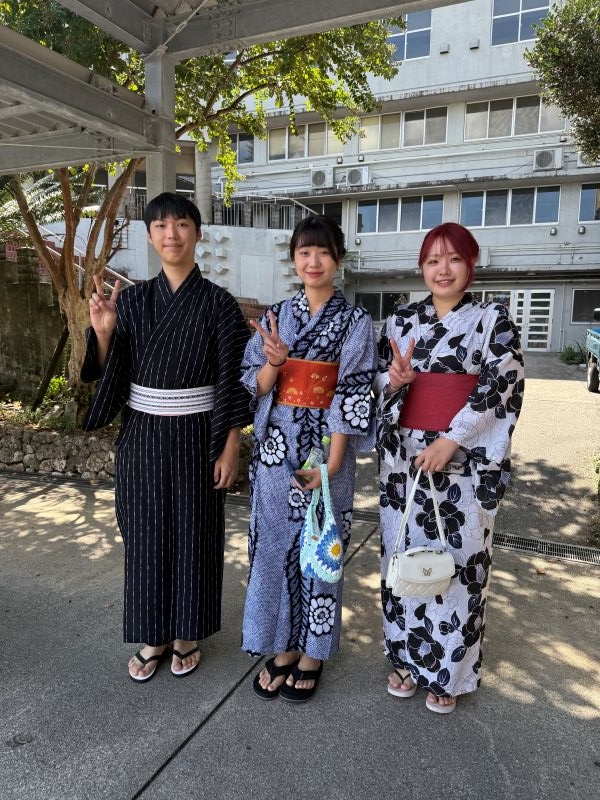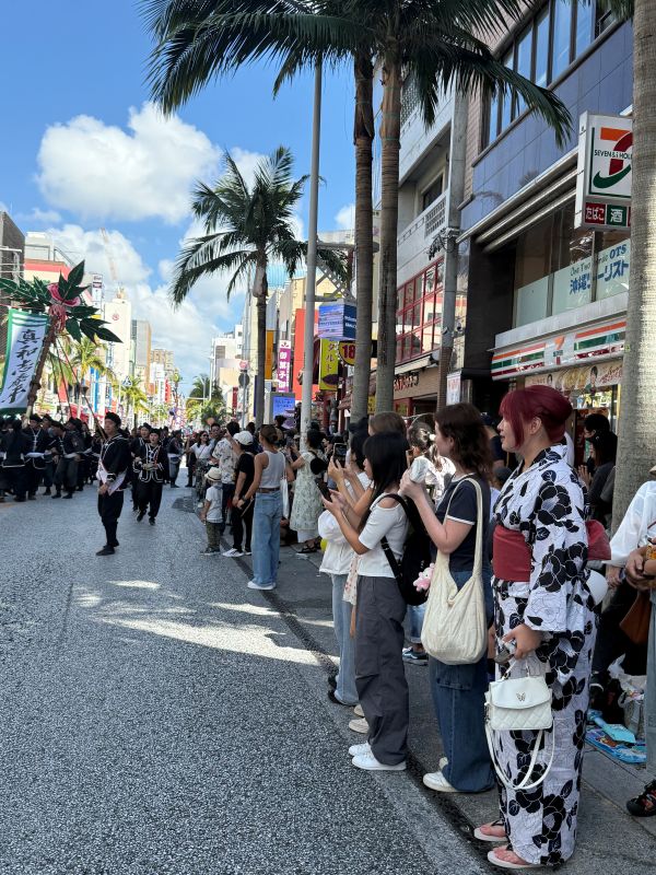 この日は旗頭行列と那覇大綱挽が行われるとあって、交換留学生2名を含む3名が浴衣