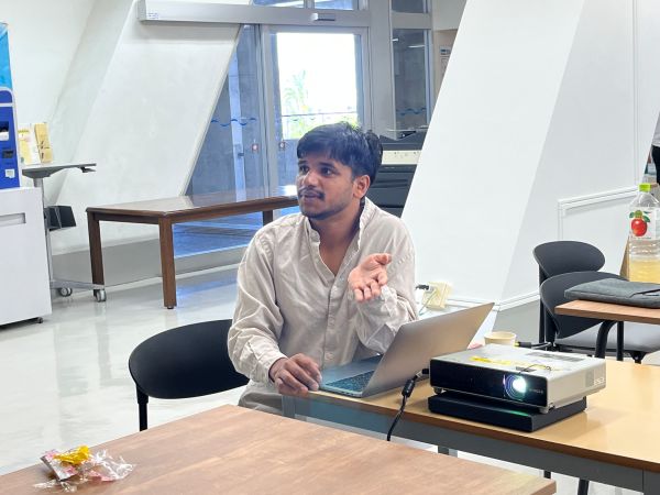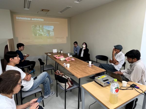 ラフルさんは、講義内で先生に紹介されたボランティア活動に興味をもち、先月、能登半島災害支援ボランティアーに参加し、仮設住宅に住む被災者の方々に対して生活支援などを行いました。この日の報告では、現在の能登の状況や復興が進んでいない現場について報告がありました。ラフルさんは「是非、実際に足を運んでほしいと思う。話をきくこと、それもお年寄りの心のケアにつながる」と、ボランティアの大切さを伝えてくれました。