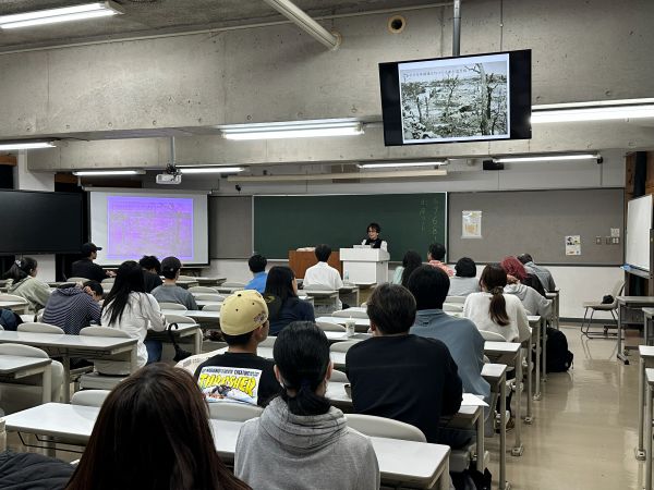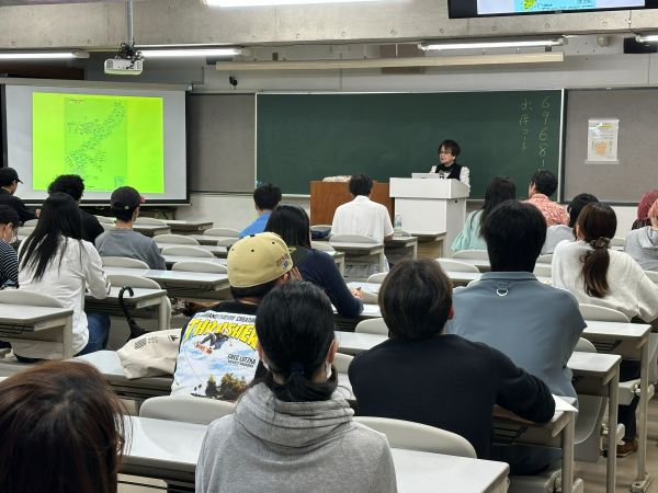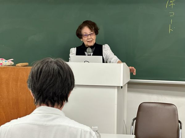 11月11日、こども文化学科須藤義人先生の講義「いのちの未来の平和学」では、沖縄戦体験者の玉木利枝子さんを講師に招き、沖縄戦、その継承について考えました。