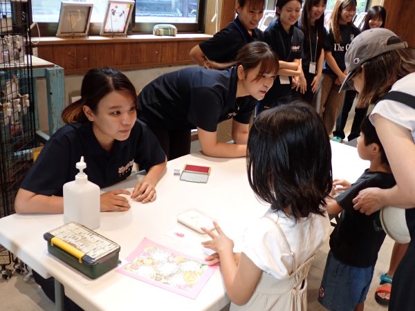 11月15日、こども文化学科盛口満先生のゼミ生(2年次)は、沖縄こどもの国でワークショップを開催しました。盛口ゼミでは、毎年この時期に、体験型のミニ授業を沖縄こどもの国で開催していて、今回は「足跡スタンプラリー」やいろいろな動物の毛皮や甲羅をさわってみる授業、クイズを通して一番の動物を紹介する授業の3つを開催しました。