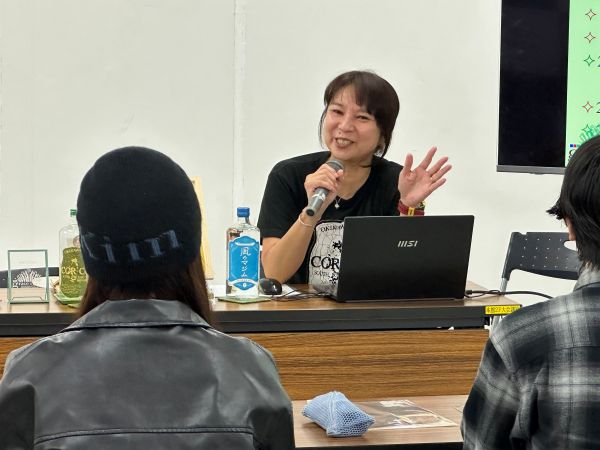 沖縄で活躍する人のビジネスヒストリーを伺い、学生たちに視野を広げてほしいと企画している「OKIDAI THE 職人倶楽部」。11回目となる今回(11月27日開催)は南大東島でサトウキビを原料にラム酒製造を手掛ける、本学卒業生の金城祐子さんをお招きして、金城さんの人生のお話、そしてラム酒について講演いただきました。