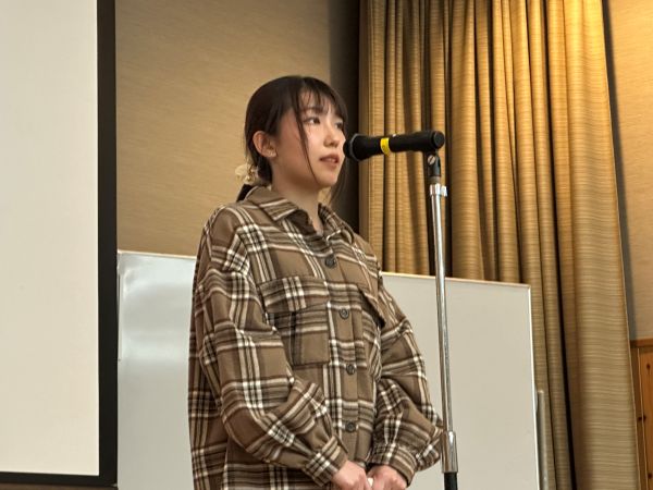本学の中国語科目履修学生や担当の先生方が参加して行われた発表会は、最初に中京大学教授の張勤先生が「それはなに?言葉から見えてくる社会と文化」と題して日本語と中国語の違いや敬語について、「友達」の解釈の違いなど言葉を通して文化がみえてくるという内容で講演をされました。その後の発表会では、履修クラスの仲間と中国語暗唱に挑んだり、個人による流暢なスピーチなど、これまで修得してきた中国語でのパフォーマンスを披露、参加者全員と中国語の面白さを体感していました。