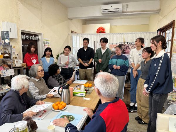 福祉文化学科玉木千賀子先生のゼミでは、高齢者らのライフヒストリーを聞いて本にまとめる取り組みをしています。今年度は4年生のゼミ生11人が3つの班にわかれ、首里にある多世代型交流の場「ゆんたくばぁ~めぐみ」に集う3人の高齢者の本を完成させ、昨日(12月11日)に贈呈式を行いました。