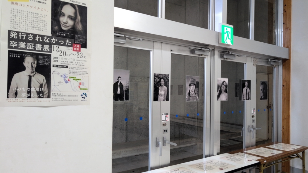 沖縄大学では、ウクライナ避難民有志による企画展「発行されなかった卒業証書展」の開催にあわせ、オンライン講演を実施しました。