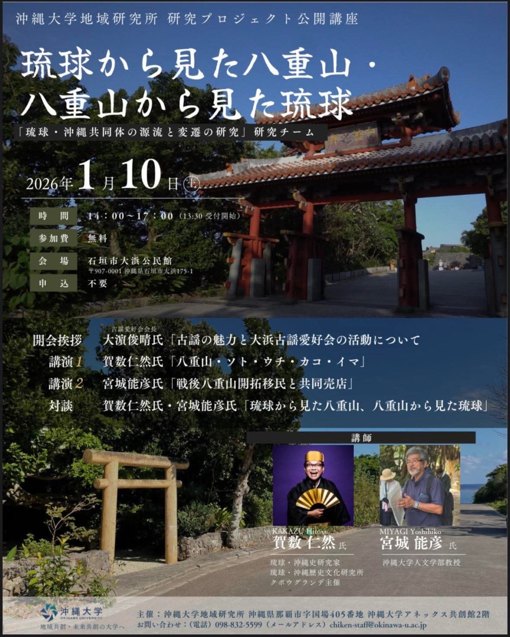 研究プロジェクト公開講座「琉球から見た八重山・八重山から見た琉球」 開催のお知らせ 1月10日(土)14:00~17:00