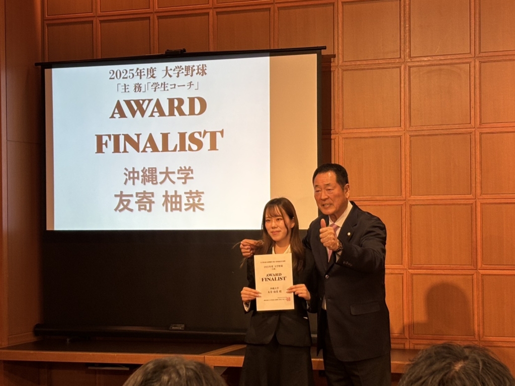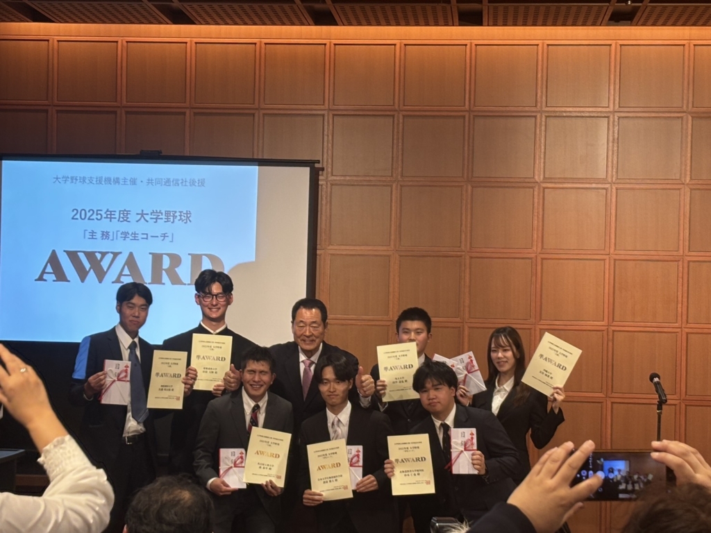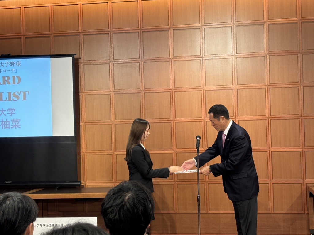 2月23日(月)に、東京大学で「2025年度 大学野球AWARD」の表彰式が開催され、本学の管理栄養学科4年の友寄柚菜さんが主務部門にて準AWARD賞を受賞しました。